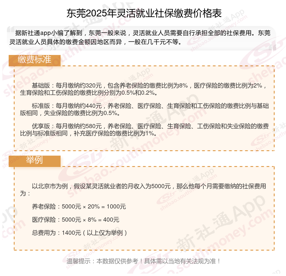灵活就业社保是指针对灵活就业人员的社会保险制。灵活就业人员包括个体经营者、自由职业者、临时工等,他们没有固定的雇主,因此需要自行缴纳社会保险。那么2025年东莞灵活就业人员社保需要交多少钱?下面随新社通小编一起来看看。