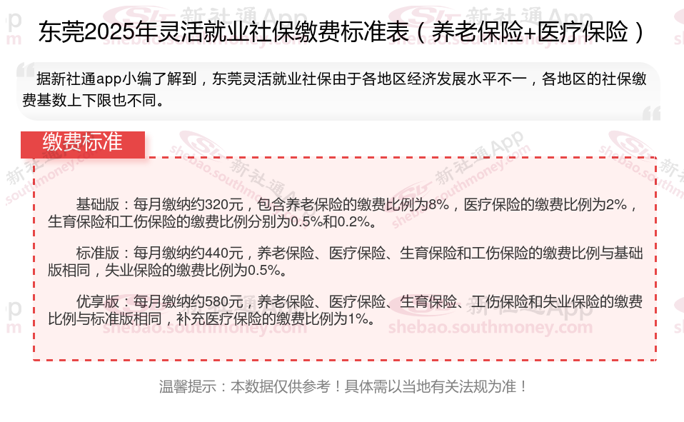 随着经济的发展和社会的进步,灵活就业人员越来越多,但是很多人不知道如何缴纳社保。本文将介绍2025年东莞灵活就业人员社保缴费基数及如何缴纳社保,能领取多少钱,帮助大家更好地了解灵活就业社保,随着新社通APP小编一起了解东莞灵活就业社保缴费最新资讯吧。