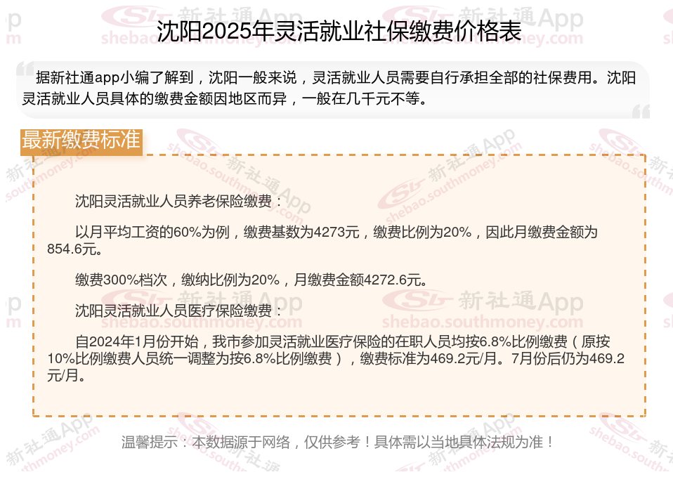 一、2024年沈阳灵活就业社保缴费标准表 沈阳灵活就业社保多少钱一个月?
