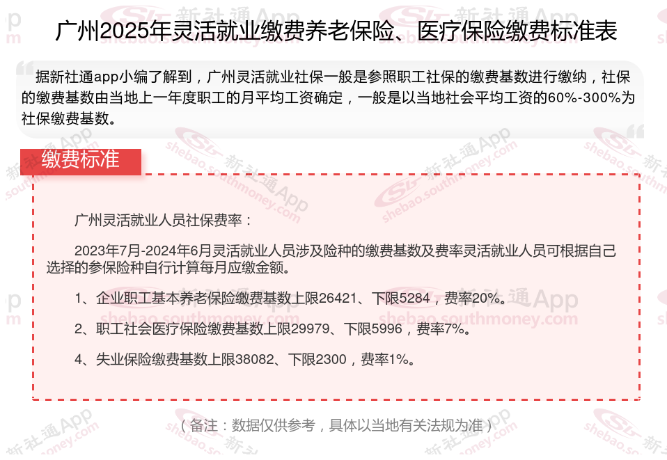 二、广州2025年灵活就业社保缴费基数及比例最新消息