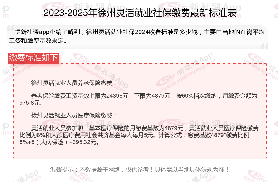 2025年徐州灵活就业社保缴费标准多少钱一个月?