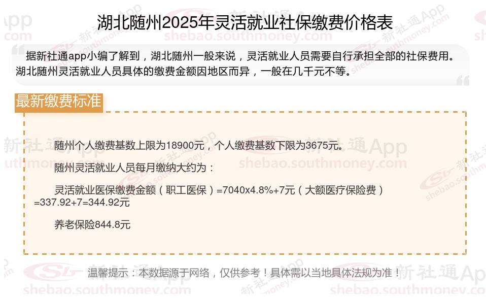 2025年湖北随州灵活就业人员社保需要交多少钱?随着经济社会的不断发展,灵活就业群体也日益壮大,其社保缴费问题也愈发受到关注。接下来随新社通APP小编一起来看看灵活就业群体社保缴费问题吧。