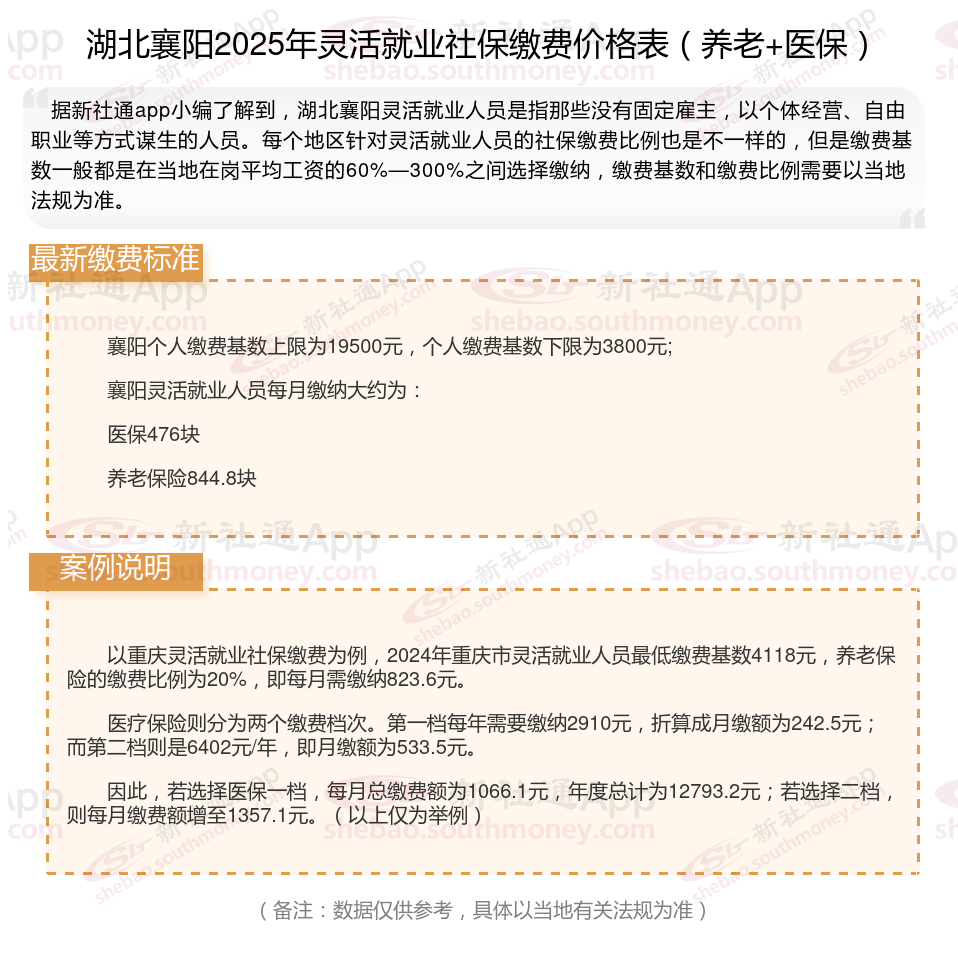 二、湖北襄阳灵活就业社保缴费基数及比例最新消息
