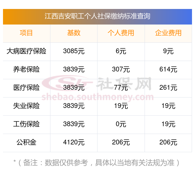 【社保攻略】明明白白交社保!社保缴纳费用是根据个人的缴费基数和缴费比例来计算的。江西吉安社保养老保险基数为:3839.00。那么一个月需要缴纳多少钱?跟着新社通小编一起来了解一下2025年江西吉安社保缴费详情。