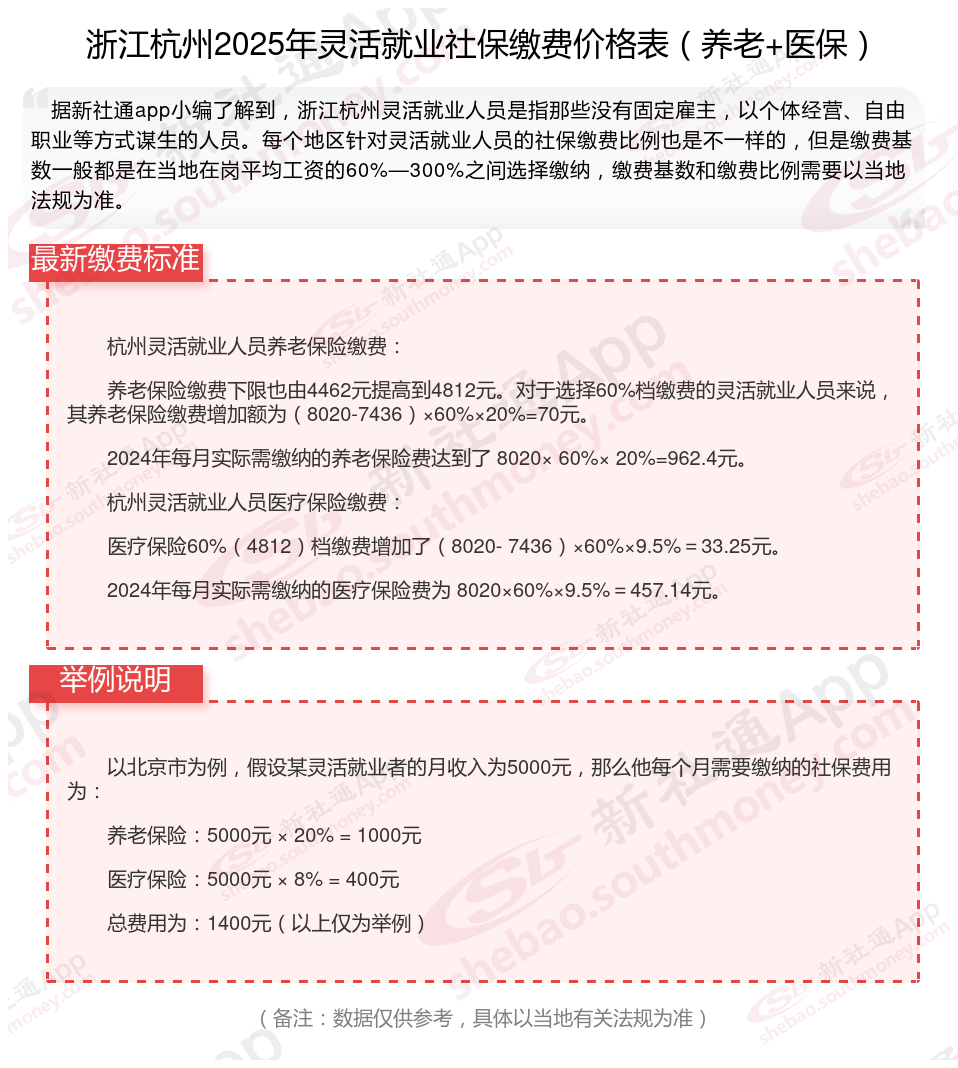 一、2025年浙江杭州灵活就业社保缴费标准表 2025年浙江杭州灵活就业社保多少钱一个月?