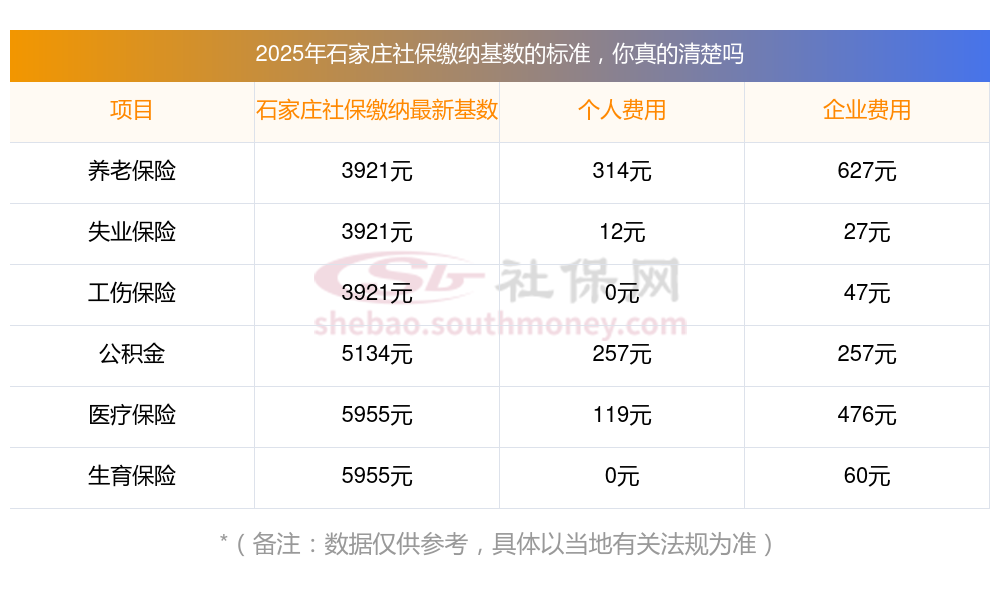 2025年石家庄社保需要交多少钱?社保(社会保险)是公民基本生活和社会福利而建立的一种强制性社保制,旨在通过社会共济的方式,分担个人在养老、医疗、失业、工伤、生育等方面的风险。接下来随新社通APP小编一起来看看石家庄社保缴费多少的内容。