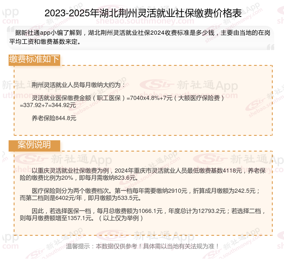 二、湖北荆州2024年灵活就业社保缴费基数及比例最新消息