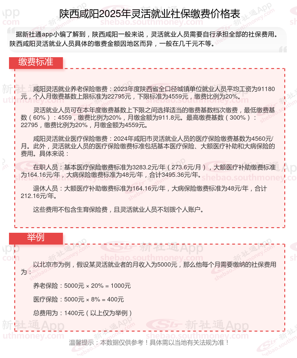 2025年陕西咸阳灵活就业社保缴费标准多少钱一个月?