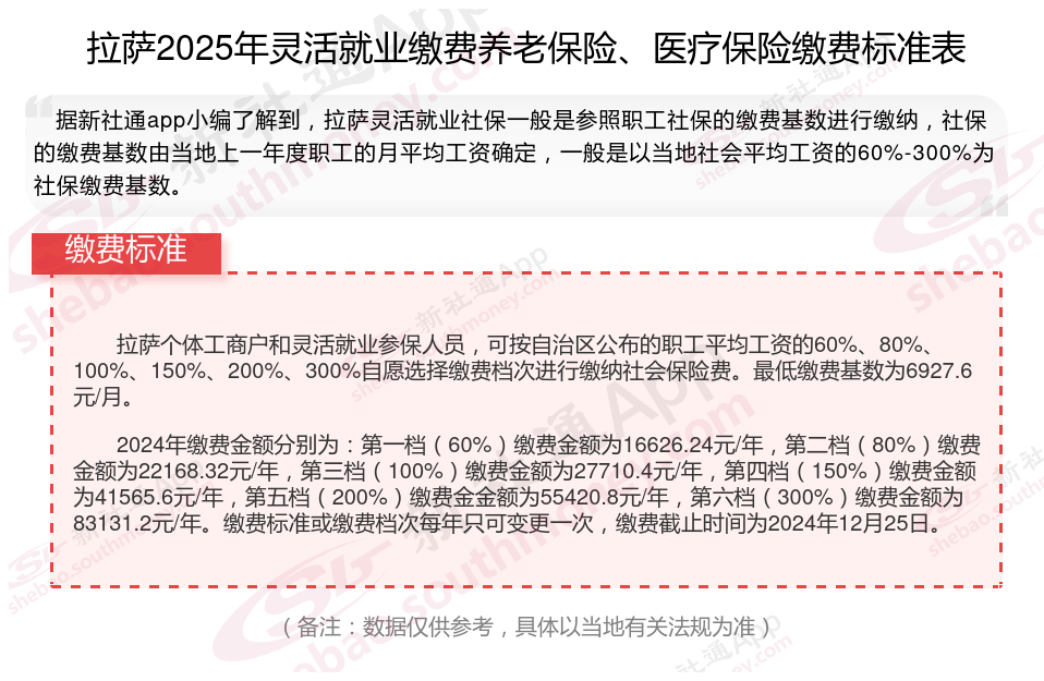 二、2025年拉萨灵活就业社保缴费基数及比例最新消息