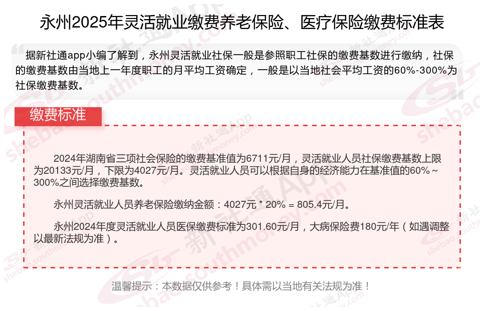 一、2024年永州灵活就业社保缴费标准表 永州灵活就业社保多少钱一个月?