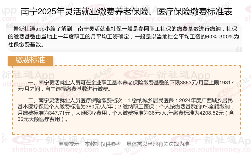 二、南宁2024年灵活就业社保缴费基数、比例最新消息