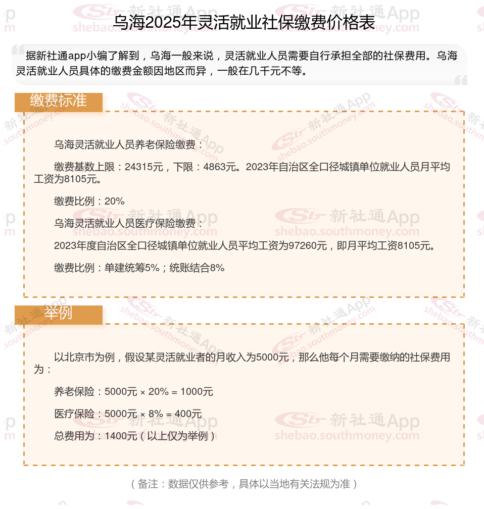 2025年乌海灵活就业社保缴费标准多少钱一个月?