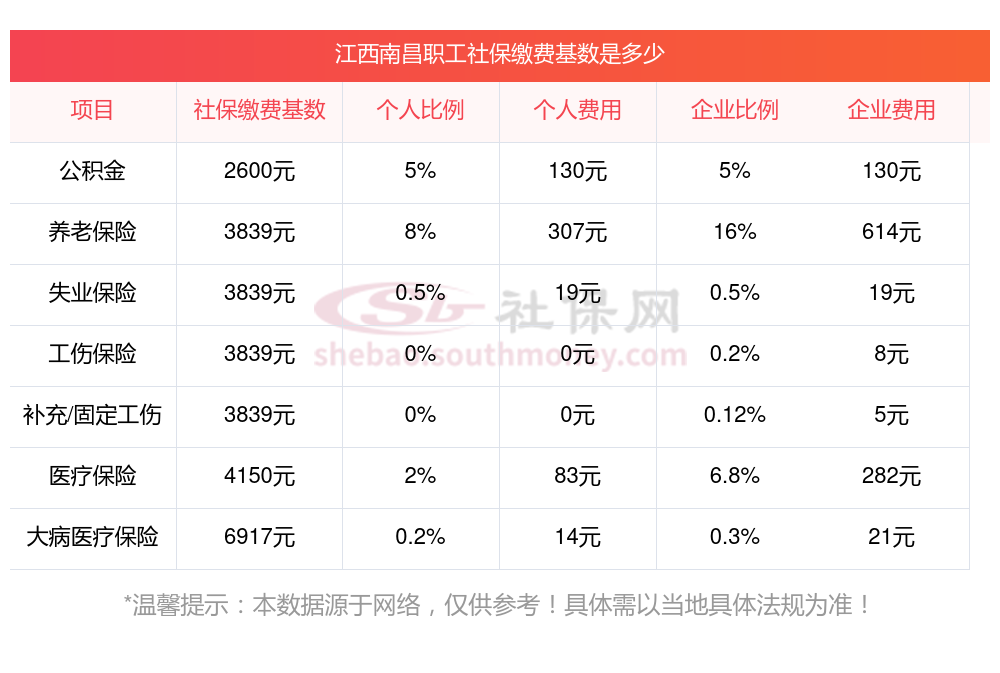 一、2025年江西南昌职工社保缴费基数是多少钱一个月?职工社保缴纳标准