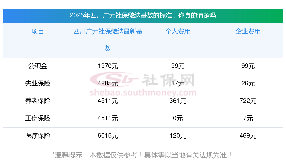 二、四川广元社保缴费基数是多少?2025年四川广元社保养老金的计算公式最新消息: