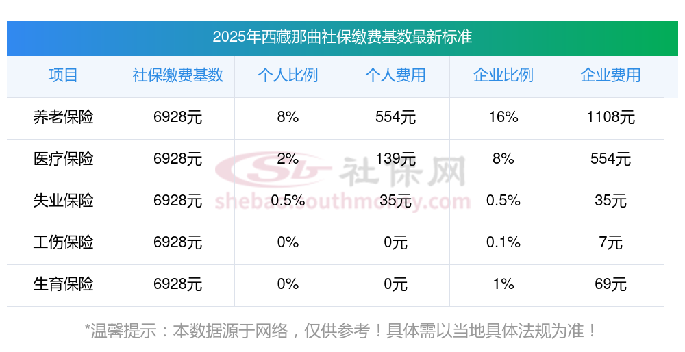 【社保缴多少钱】2025年度最新社保缴费基数是多少?社保缴费基数,就是社保缴纳的缴费标准。接下来随社保君了解一下2025年西藏那曲社保交多少钱,2025年西藏那曲社保缴费标准的详细内容。