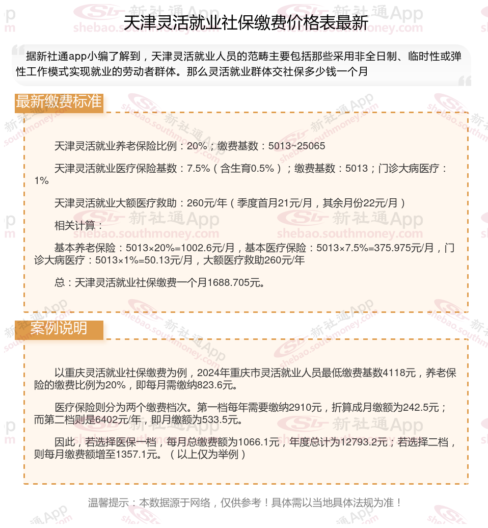 一、2024年天津灵活就业社保缴费标准表 天津灵活就业社保多少钱一个月?
