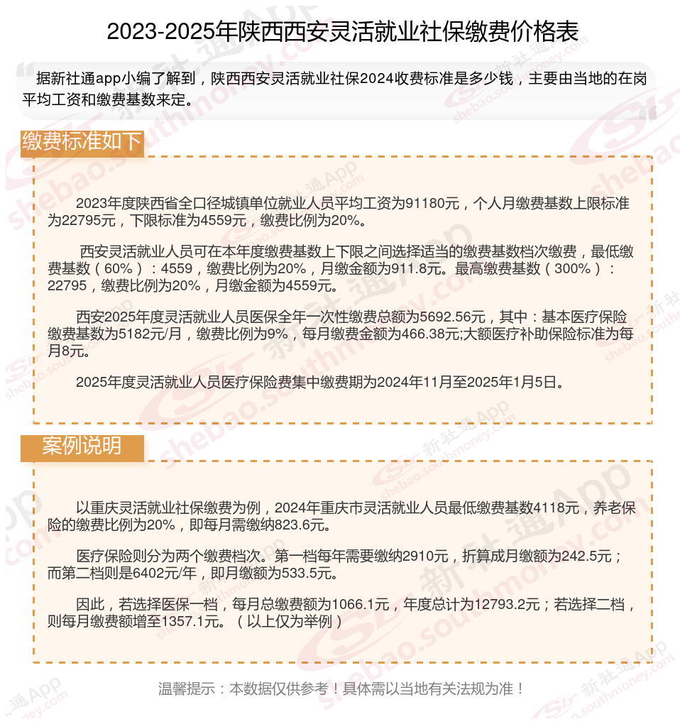 陕西西安灵活就业社保缴费标准表 陕西西安灵活就业社保多少钱一个月?