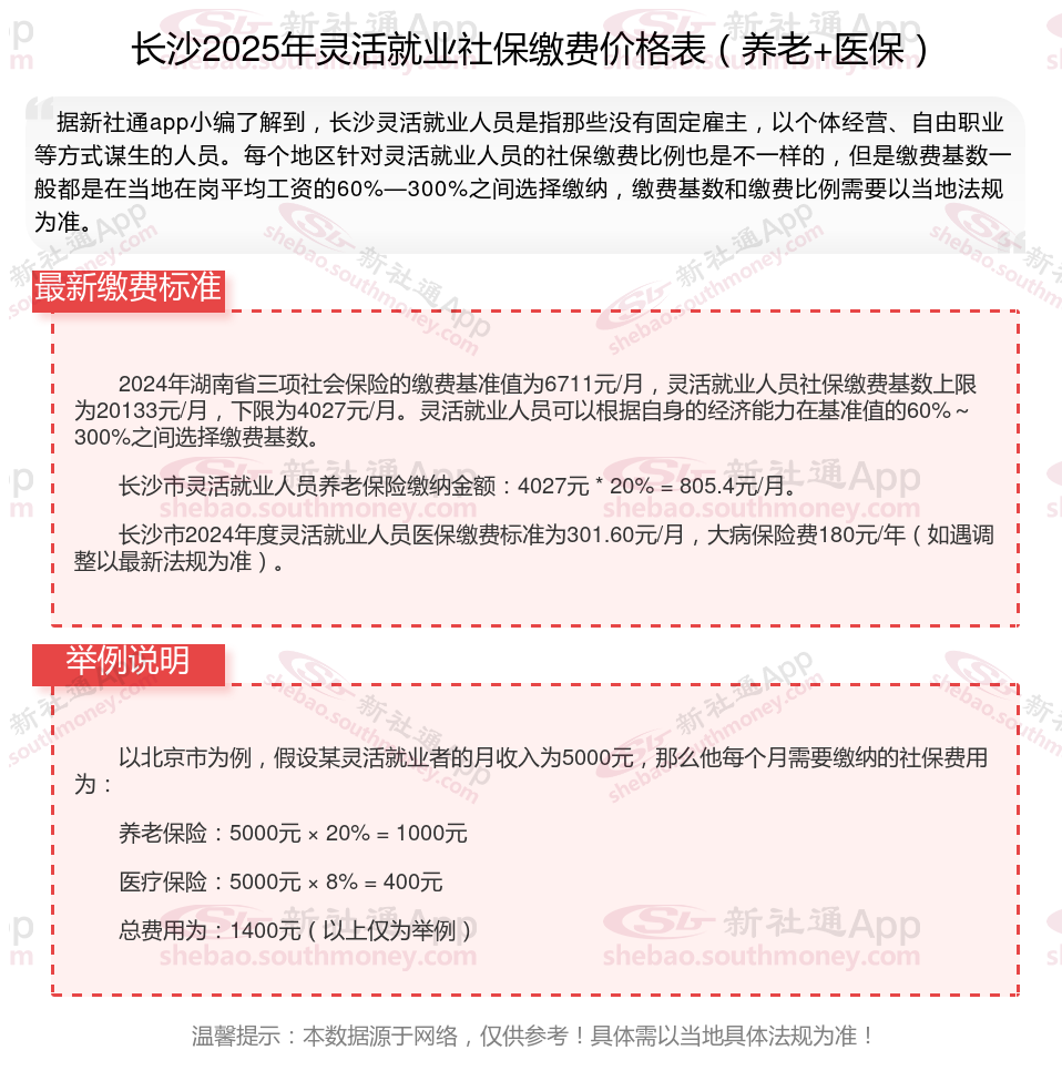 灵活就业社保缴费法规继续完善,涵盖了养老保险、医疗保险、失业保险等多个方面,旨在为灵活就业人员提供全面的社会保证。接下来随社保君了解一下2025年长沙灵活就业人员社保交多少钱的详细内容。