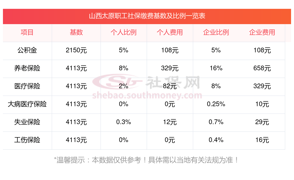 一、山西太原职工社保缴费基数是多少钱一个月?职工社保缴纳标准最新如下:
