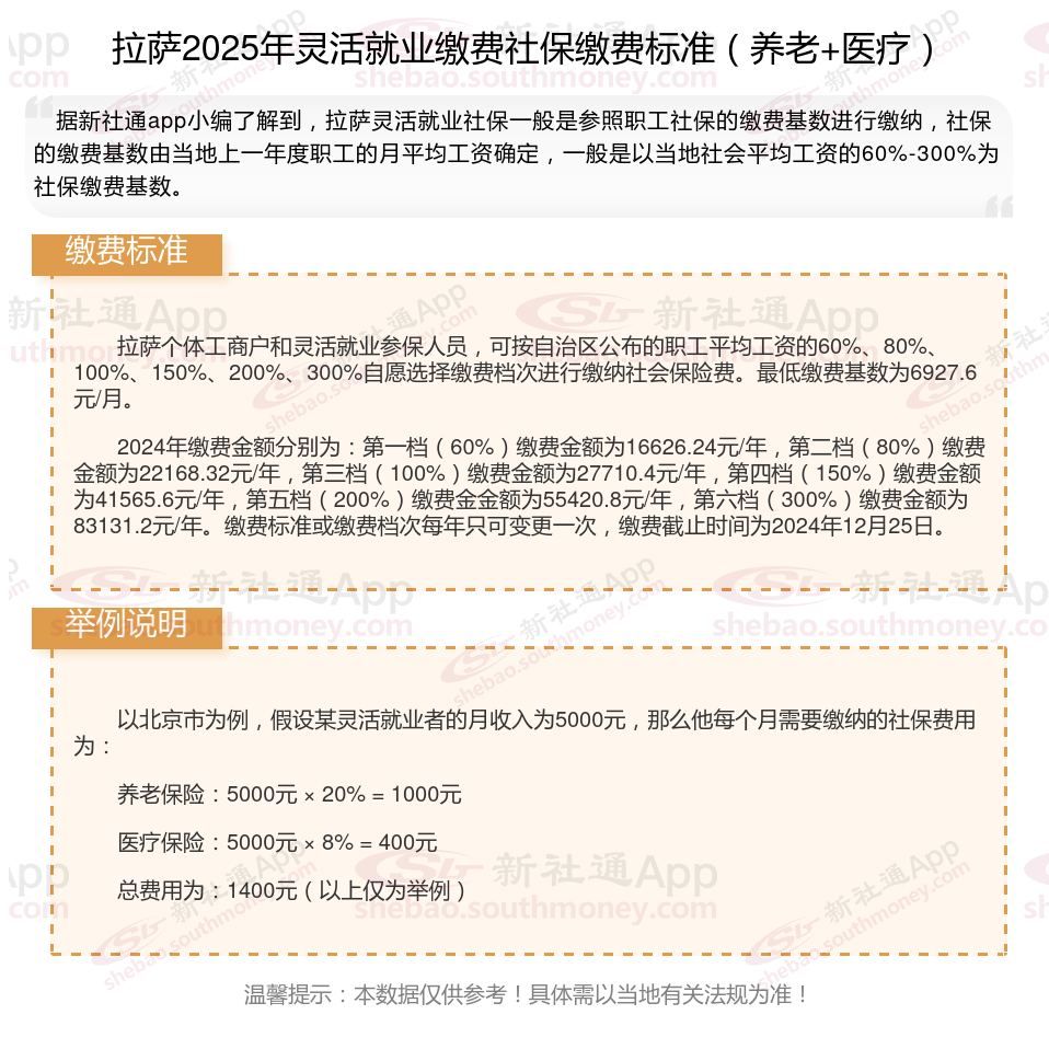 二、拉萨灵活就业社保多少钱一个月?