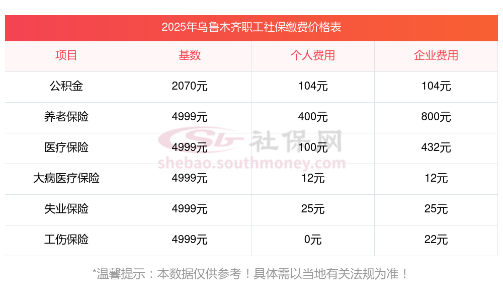一、乌鲁木齐交社保一个月多少钱?2025年乌鲁木齐社保缴费比例、明细