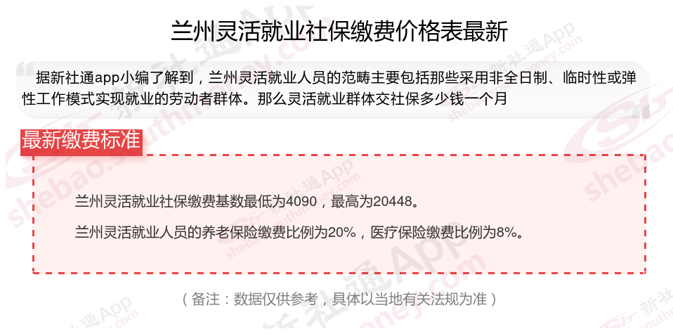 一、2024年兰州灵活就业社保缴费标准表 兰州灵活就业社保多少钱一个月?