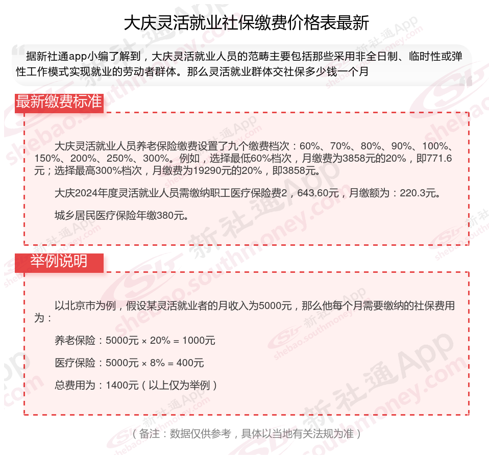 一、2024年大庆灵活就业社保缴费标准表 大庆灵活就业社保多少钱一个月?