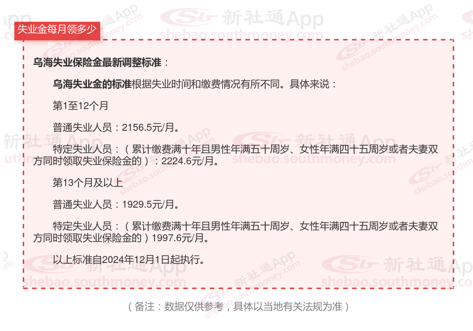 乌海基准金额:与地区类别及缴费年限挂钩,例如: