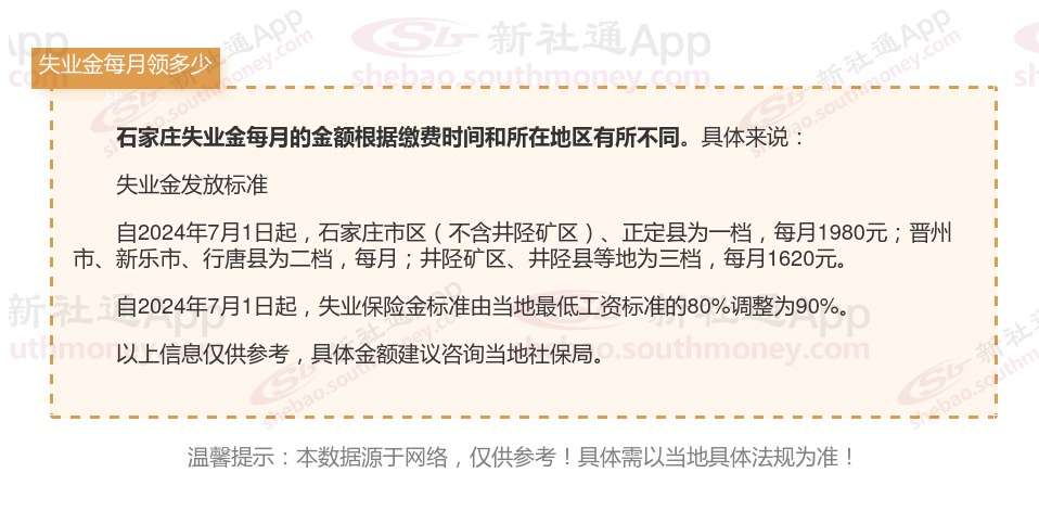 石家庄基准金额:与地区类别及缴费年限挂钩,例如: