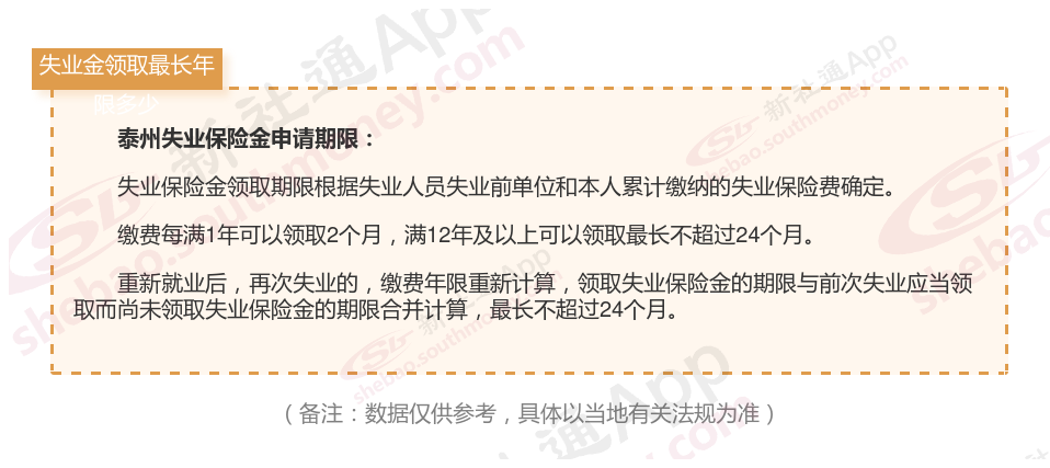 比如:江苏泰州可以领取失业保险金的期限表