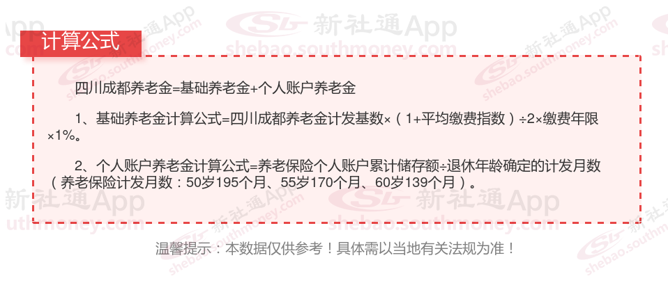 网友杨某退休城市在四川成都,性别:男,出生年份:1965,总缴年数23年,缴费档次:160%,新社通app养老金计算器所得: