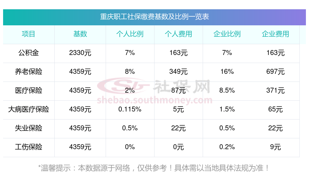 2025社保交多少钱?下表是2025年重庆社保费用明细参考,新社通app-社保缴费查询工具提供的最新数据如下: