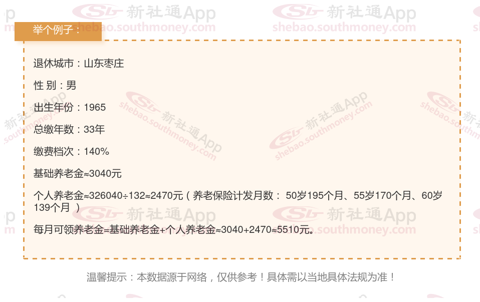 山东枣庄33年个人养老金:个人账户养老金计算:个人账户养老金的计算方法是根据您个人账户中的储蓄金额除以缴费月数,缴费月数根据您的退休年龄确定。通过公式计算出每月大约2470元。