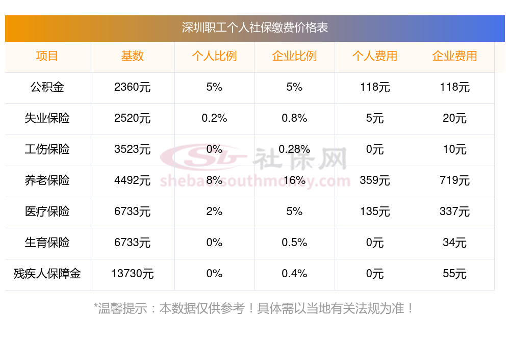 深圳2025年养老保险缴费标准是多少?下表是2025年深圳社保费用明细参考,新社通app-社保缴费查询工具提供的最新数据如下: