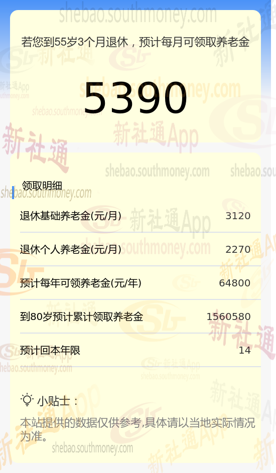 新社通app养老金计算器计算所得: