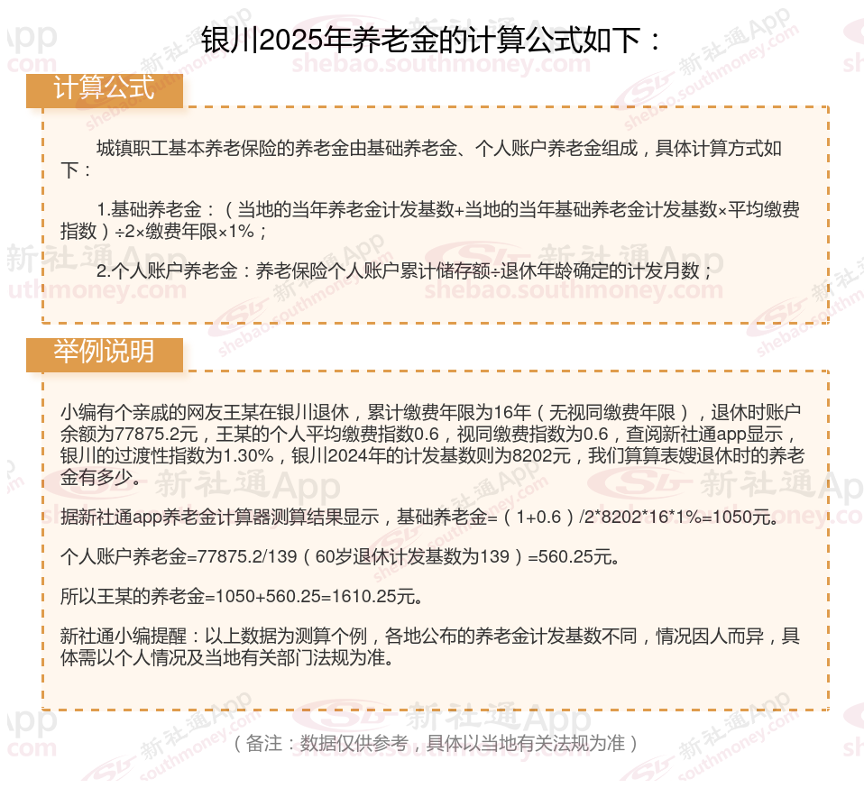 基础养老金计算公式为:(全省上年度在岗职工月平均工资+本人指数化月平均缴费工资)÷2×缴费期限×1%。