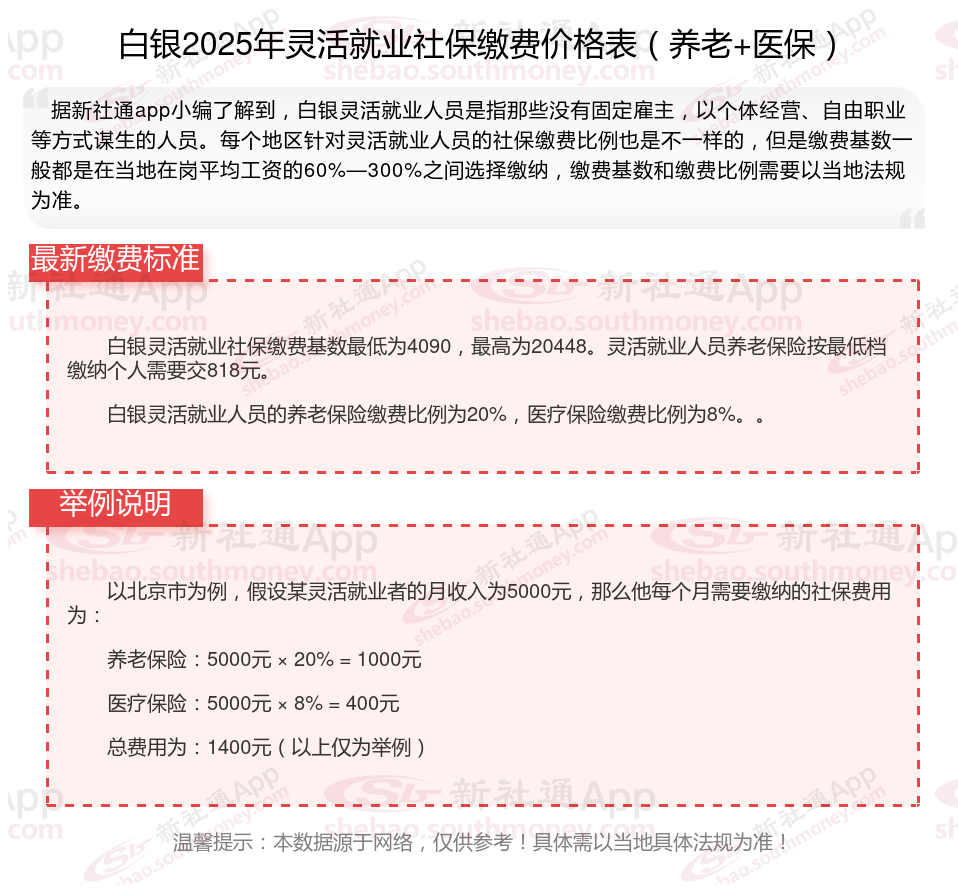 据新社通app数据显示,白银灵活就业人员养老缴费基数2024-2025年最新标准如下: