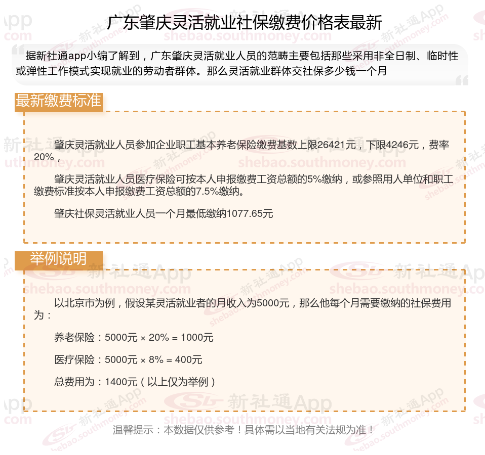 广东肇庆灵活就业自己交社保一个月要交多少钱?根据新社通app-社保缴费查询工具提供的最新数据如下: