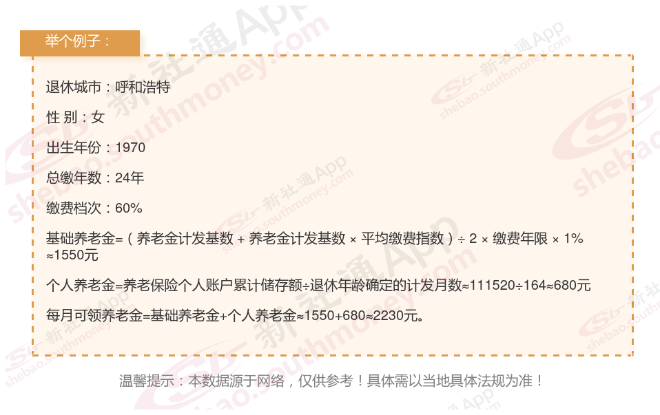 希某,呼和浩特人,1970年出生,是一名拥有24载社保缴费年限的退休女性,缴费档次稳定在60%。岁月流转,她终于迎来了自己的退休时光。借助新社通app养老金在线计算器计算所得: