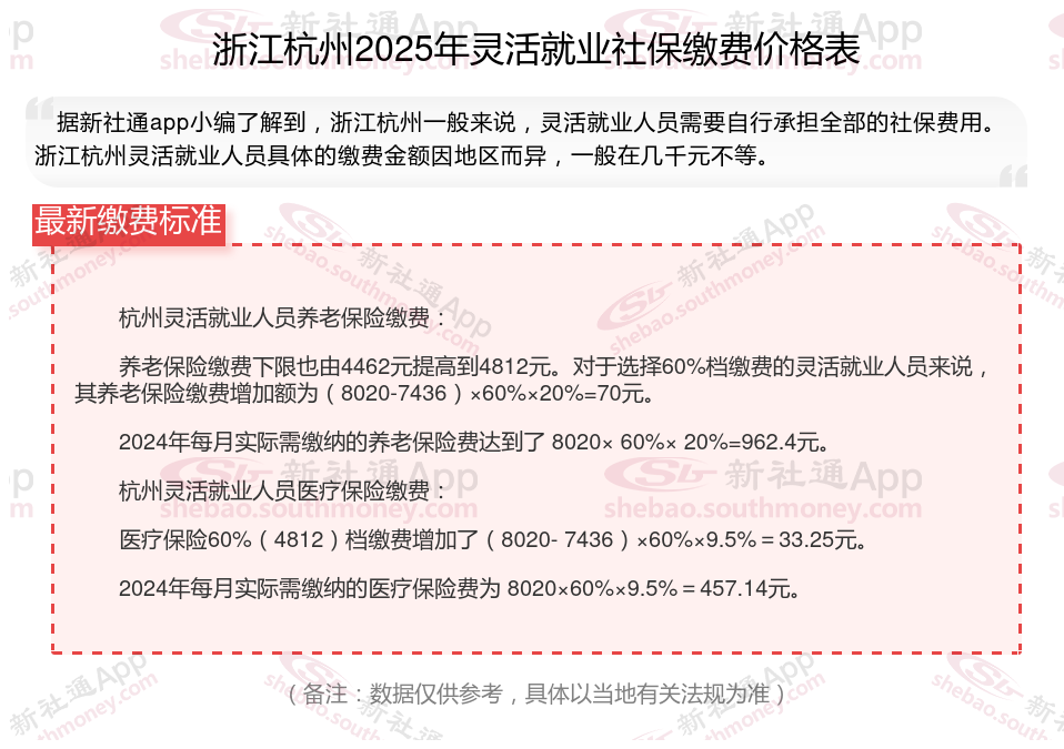 那么,灵活就业者社保是多少钱一个月多少钱?根据新社通app-社保缴费查询工具提供的2025社保缴费标准详情数据: