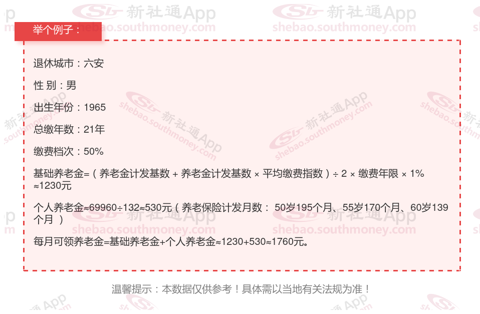 个人基础信息:男性,1965年出生,六安退休人士,拥有21年的缴费年限,缴费档次为50%。