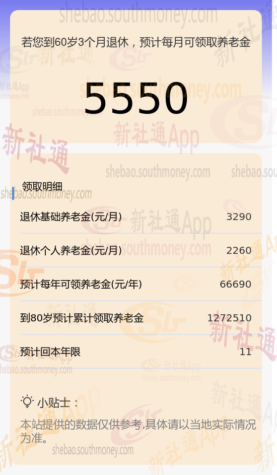 养老金总和:最后,把基础养老金和个人养老金一加,沈某每个月能领到的养老金总额就是大约5550元,这个数可是相当可观的!