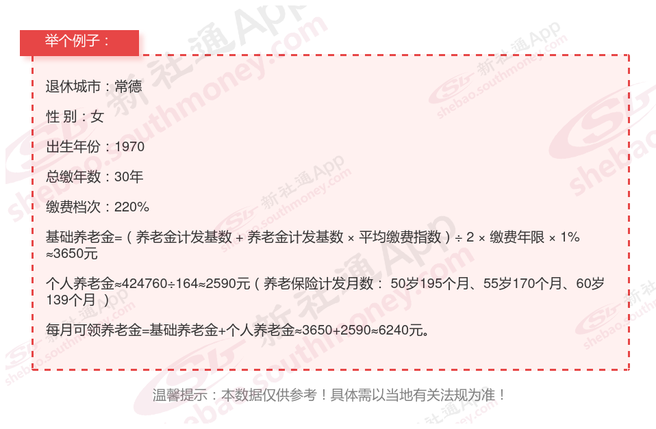 个人档案:女性,1970年出生,常德退休职工,社保缴费30载,档次220%。