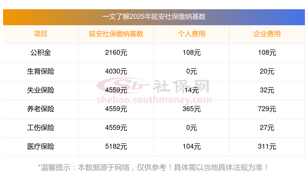 2025年延安社保缴费价格标准是多少,2025年延安社保缴费多少钱?下表是2025年延安社保费用明细参考,新社通app-社保缴费查询工具提供的最新数据如下: