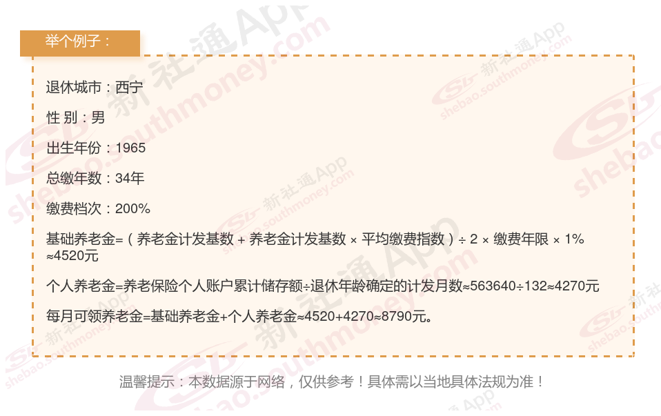 柯某,西宁人,1965年出生,工龄34年,男性,缴费档次按200%。岁月流转,他终于迎来了自己的退休时光。借助新社通app养老金在线计算器计算所得: