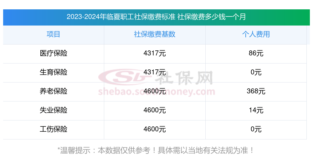 2025年临夏社保缴费价格标准是多少,2025年临夏社保缴费多少钱?下表是2025年临夏社保费用明细参考,新社通app-社保缴费查询工具提供的最新数据如下: