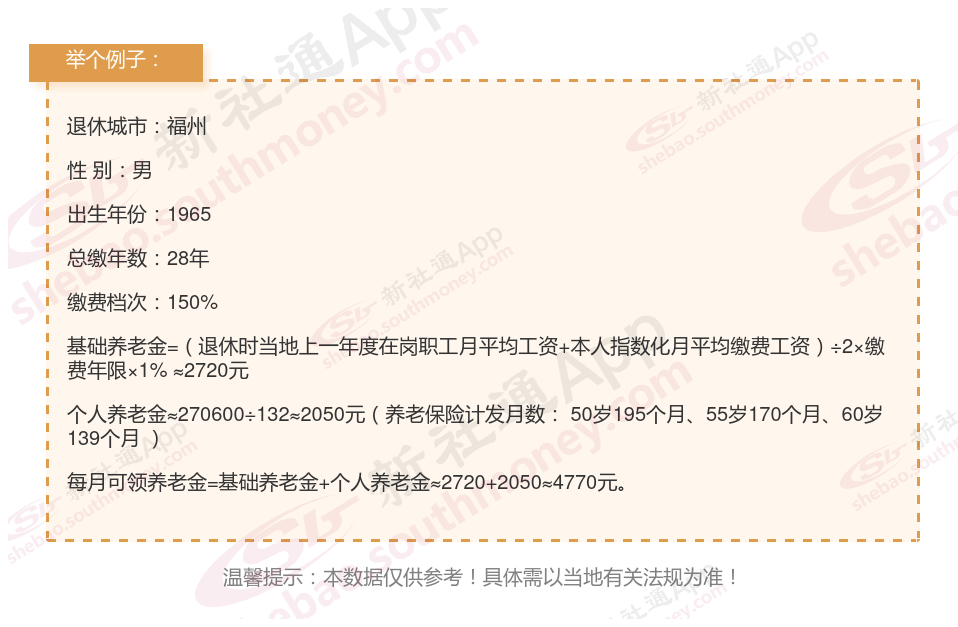基本信息:男性,1965年出生,福州退休,缴费年限28年,缴费档次150%。