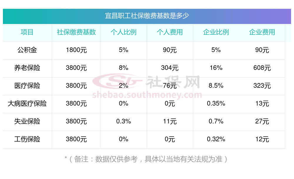 湖北社保多少钱一个月?下表是2024-2025年宜昌社保费用明细参考,新社通app-社保缴费查询工具提供的最新数据如下: