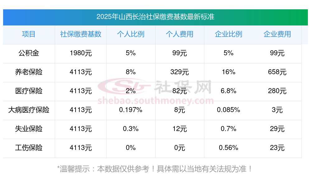 和新社小编一起来了解下:山西长治社保缴费比例是多少?2024-2025年山西长治社保费用明细参考,新社通app-社保缴费查询工具提供的最新数据如下: