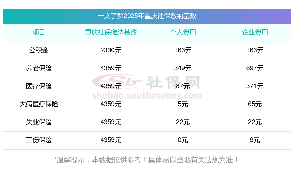 2025年重庆社保缴费多少钱?下表是2023-2024年重庆社保费用明细参考,新社通app-社保缴费查询工具提供的最新数据如下:
